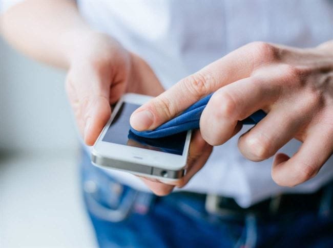 4. Se till att hålla mobiltelefoner och tangentbord rena från bakterier och fläckar. Mobiler och andra enheter med skärm som paddor eller bärbara datorer och tangentbord, lösa eller på din laptop, kan bli riktigt smutsiga och vi använder dem hela tiden oavsett vad vi gjort innan. Dammsug tangentbordet och torka rent, till exempel med en tops med handsprit på. Mobiler behöver också rengöra och det räcker inte att torka av dem med en trasa eller en tröja, du bör göra rent med en spray avsedd för att göra rent mobiler och glas på andra typer av surfplattor och skärmar.